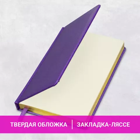 Твердая обложка стилизована под кожу рептилии насыщенного сиреневого цвета. Подходит для горячего тиснения. Срез ежедневника фольгирован золотой фольгой, что придает ему особый шарм. На форзаце располагаются карты России и мира. Дополнением является закладка-ляссе, с помощью которой при необходимости можно быстро открыть ежедневник на нужной странице. Помимо прочего, ежедневник снабжен обширным справочным материалом.