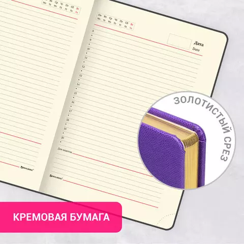 Внутренний блок включает 160 листов тонированной бумаги плотностью 70 г/м2. Каждая страничка имеет перфорированный угол. Благодаря стандартному формату А5 (138х213 мм) ежедневник удобно использовать как в офисе, так и на выездных деловых встречах.