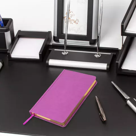 Внутренний блок включает 160 листов тонированной бумаги плотностью 70 г/м2. Каждая страничка имеет перфорированный угол. Благодаря стандартному формату А5 (138х213 мм) ежедневник удобно использовать как в офисе, так и на выездных деловых встречах.