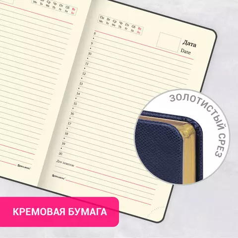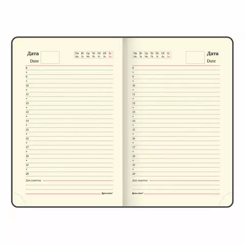 Внутренний блок включает 160 листов тонированной бумаги плотностью 70 г/м2. Каждая страничка имеет перфорированный угол. Благодаря формату А6 (100х150 мм) ежедневник удобно использовать как в офисе, так и на выездных деловых встречах.