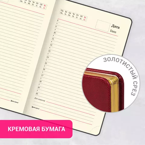 Внутренний блок включает 160 листов тонированной бумаги плотностью 70 г/м2. Каждая страничка имеет перфорированный угол. Благодаря формату А6 (100х150 мм) ежедневник удобно использовать как в офисе, так и на выездных деловых встречах.