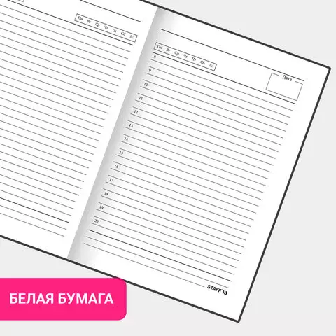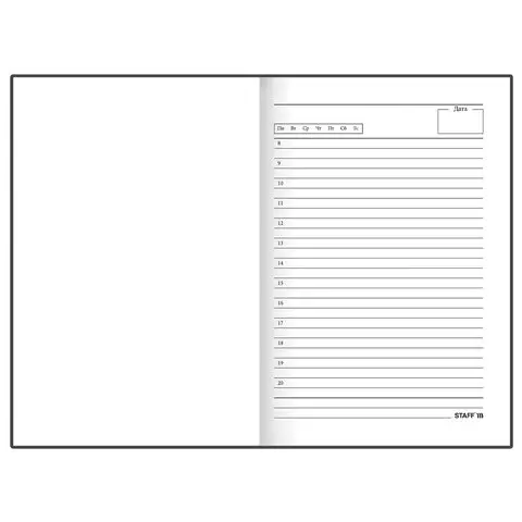 Недатированный ежедневник STAFF предназначен для ведения записей. Отсутствие дат делает его уникальным товаром, которым можно начать пользоваться в любое время года. Надежен и практичен в применении.