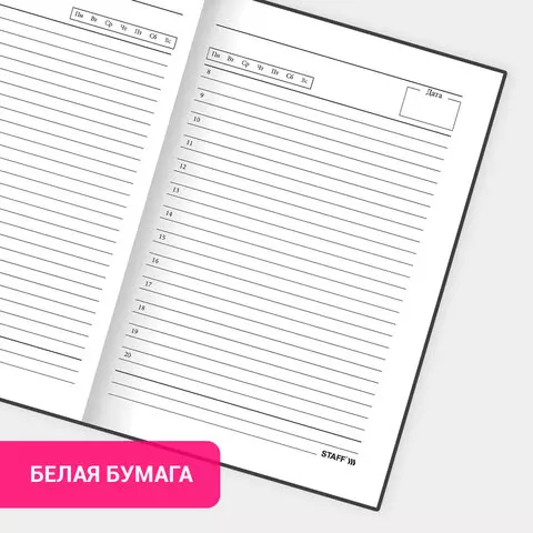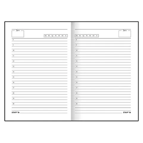 Недатированный ежедневник STAFF предназначен для ведения записей. Отсутствие дат делает его уникальным товаром, которым можно начать пользоваться в любое время года. Надежен и практичен в применении.
