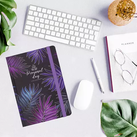 Ежедневник недатированный с резинкой А5 (145х203 мм), BRAUBERG, твердый, фольга, 128 л., "Tropical", 114565