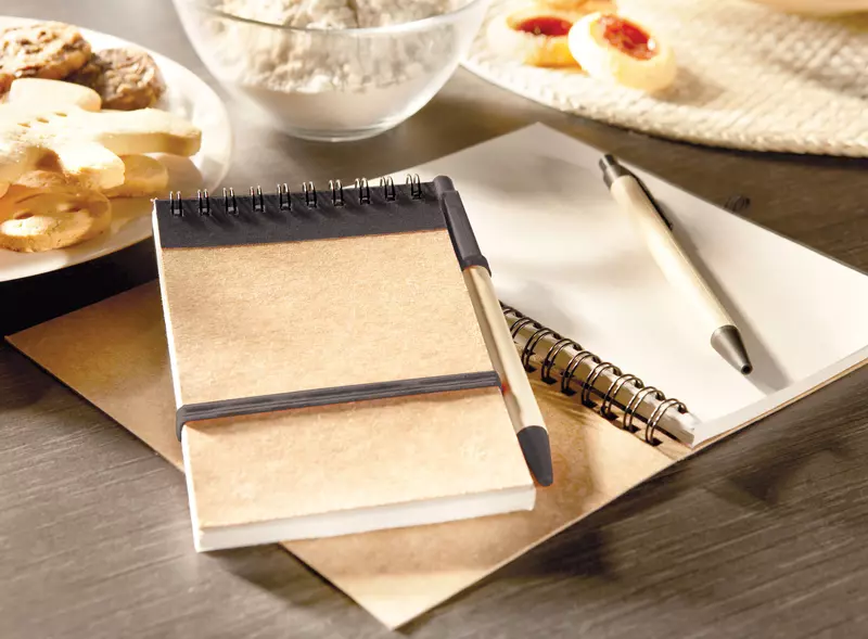 Блокнот - биопереработанный картон, Ручка - биопереработанный пластик.