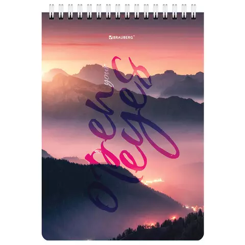 Блокнот А5 (146х206 мм), 60 л., гребень, картон, клетка, BRAUBERG, "Горы в облаках", 114361