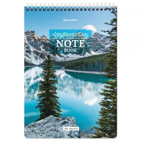 Блокнот А5 (146х206 мм), 60 л., гребень, картон, жесткая подложка, клетка, BRAUBERG, "Горные пейзажи", 114367