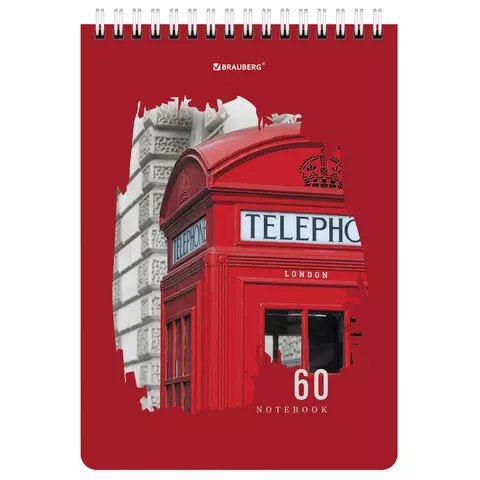 Блокнот А5 (146х206 мм), 60 л., гребень, картон, жесткая подложка, клетка, BRAUBERG, "Города", 114369