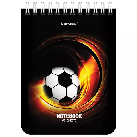 Блокнот МАЛЫЙ ФОРМАТ (108х145 мм) А6, 40 л., гребень, картон, клетка, BRAUBERG, "Футбол", 114390
