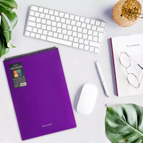 Блокнот БОЛЬШОГО ФОРМАТА А4 80л, обложка пластик, клетка, BRAUBERG Metropolis, ФИОЛЕТОВЫЙ, 115576