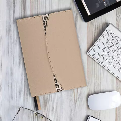 Недатированный ежедневник BRAUBERG в твёрдой обложке с анималистичным принтом и магнитным клапаном — стильное и компактное решение для эффективного планирования и создания имиджа пунктуального человека.