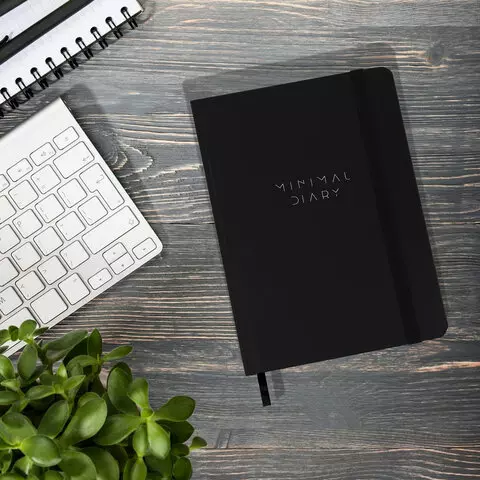 Ежедневник недатированный с резинкой А5 145х203мм, BRAUBERG, твердый, черный, 128л, Minimal, 116284