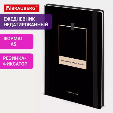 Ежедневник недатированный с резинкой А5 145х203мм, BRAUBERG, твердый, 128л, Black, 116288