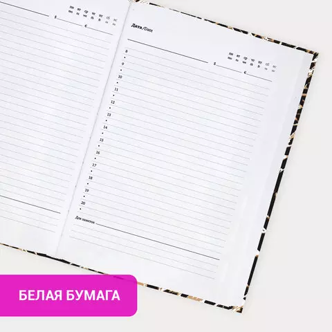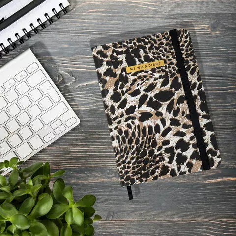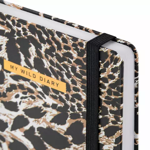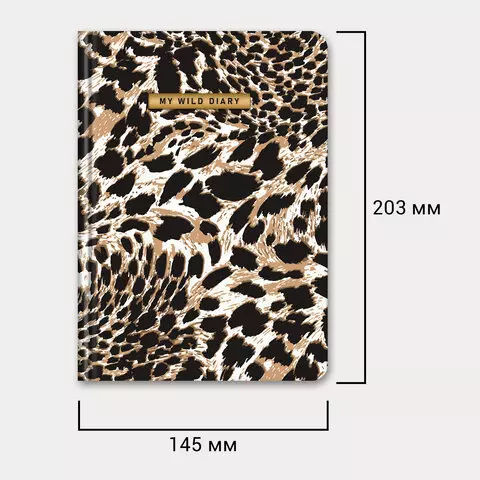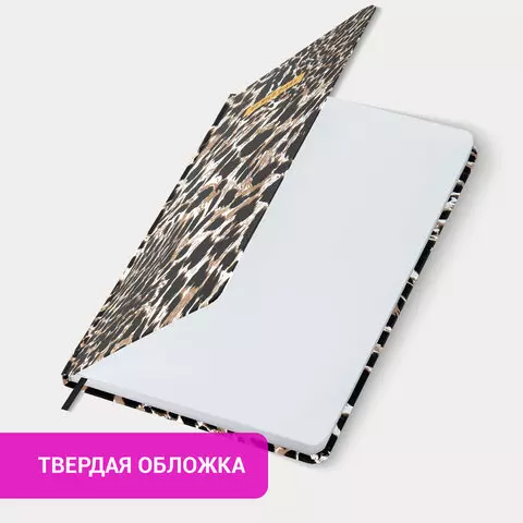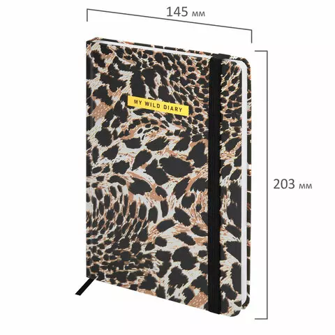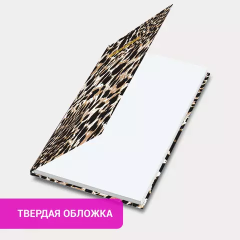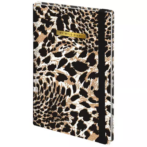 Ежедневник недатированный с резинкой А5 145х203мм, BRAUBERG, твердый, фольга, 128л, Leopard, 116291