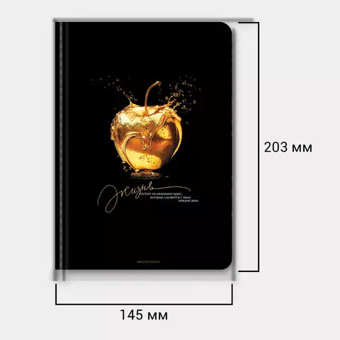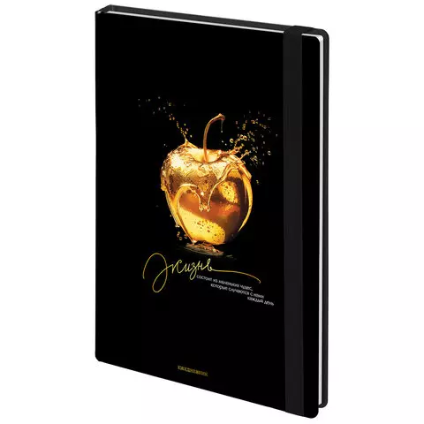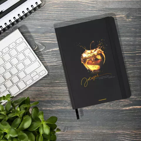 Ежедневник недатированный с резинкой А5 145х203мм, BRAUBERG, твердый, фольга, 128л, Apple, 116294