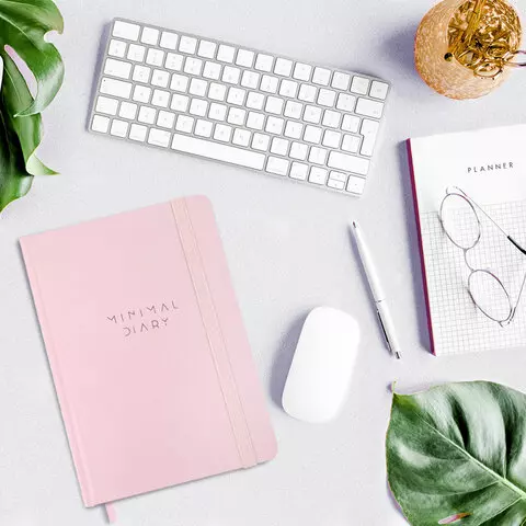 Ежедневник недатированный с резинкой А5 145х203мм, BRAUBERG, твердый, розовый, 160л, Minimal, 116301