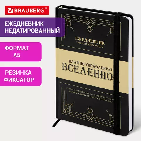 Ежедневник недатированный с резинкой А5 145х203мм, BRAUBERG, твердый, 160л, Secret Emperor, 116304