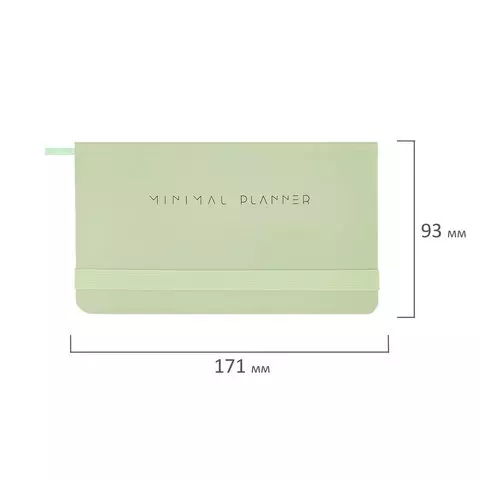 Еженедельник недатированный с резинкой 171х93мм, BRAUBERG, твердый, зеленый, 64л, Minimal, 116314