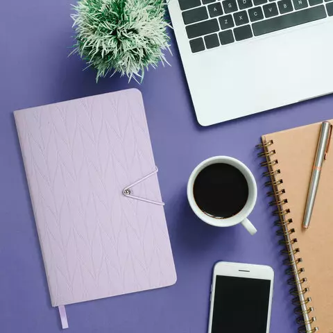 Ежедневник недатированный А5 138х213мм BRAUBERG Braided, под кожу, гвоздик 160л, сиреневый, 116596