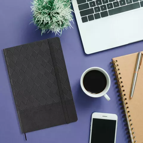 Блокнот А5 138x213мм BRAUBERG Tissage, под кожу, 80л, резинка, клетка, черный, 116601