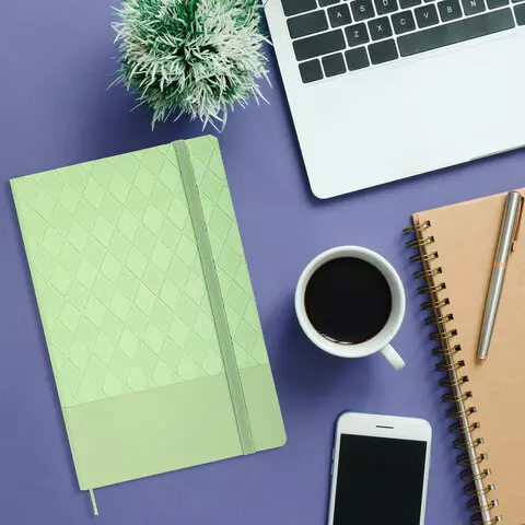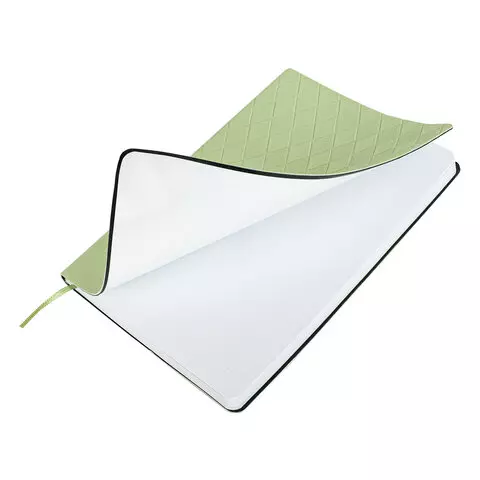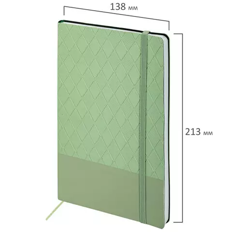 Блокнот А5 138x213мм BRAUBERG Tissage, под кожу, 80л, резинка, клетка, оливковый, 116602