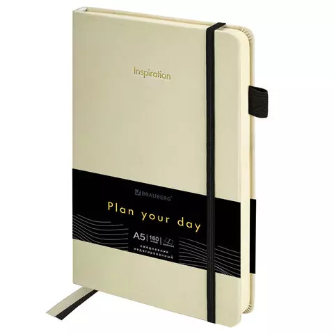 Ежедневник недатированный А5 138x213мм BRAUBERG Velvet, резинка, держатель, 160л, бежевый, 116244