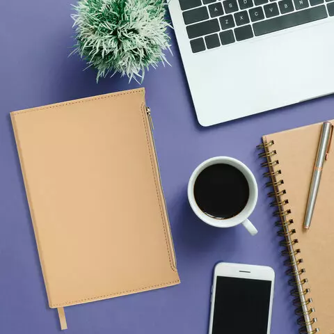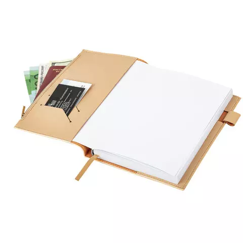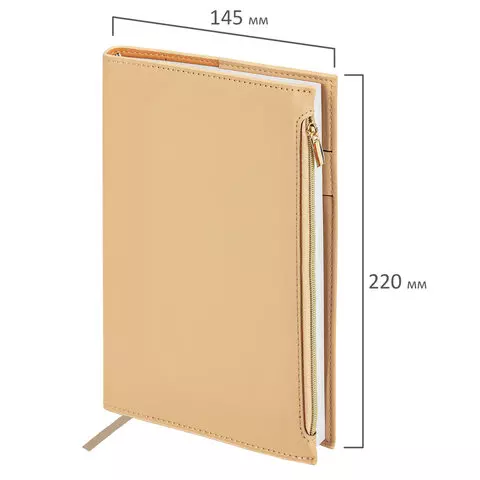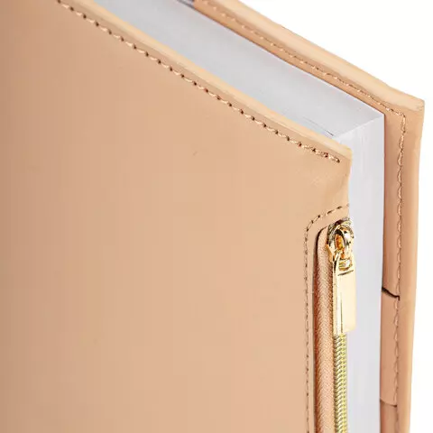 Ежедневник недатированный А5 145х220мм BRAUBERG Zipline, под кожу, карман-молния, 160л, бежевый, 116250