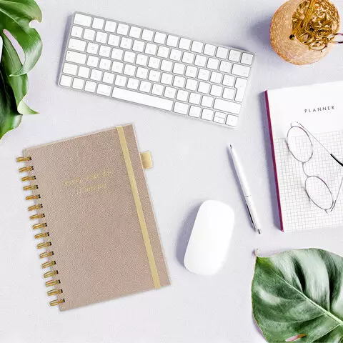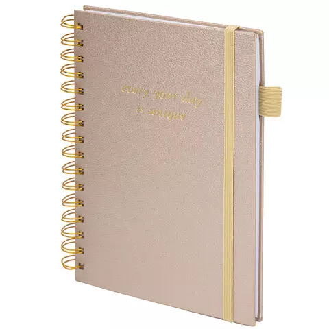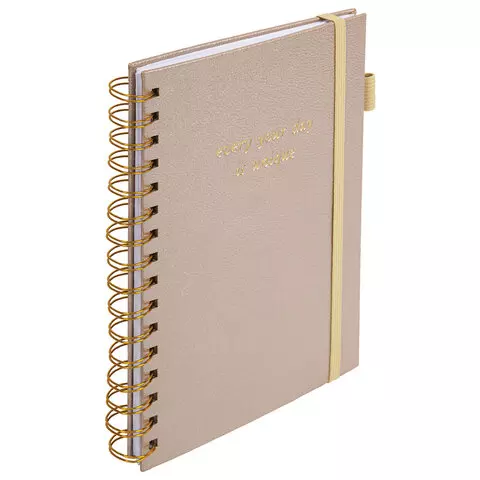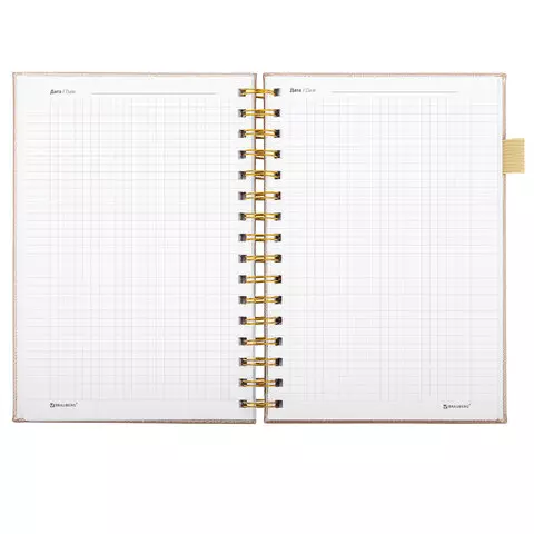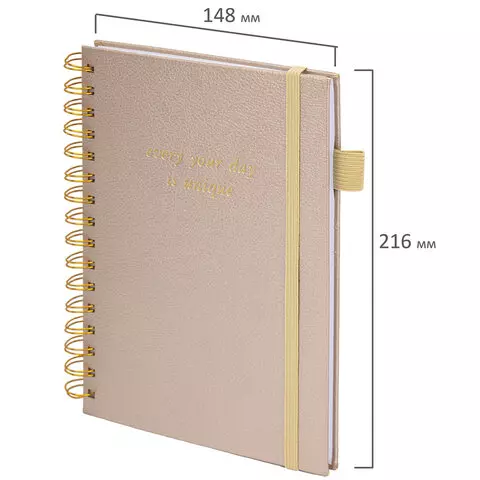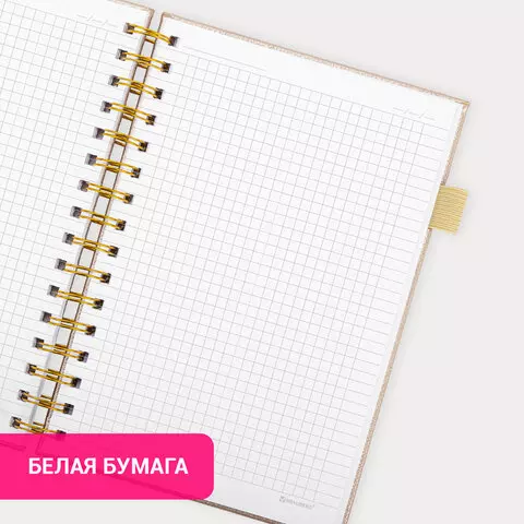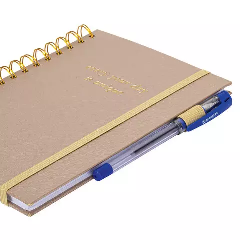 Бизнес-тетрадь на гребне А5 148х216мм BRAUBERG Calipso под кожу, резинка, клетка, 80л, бежевый, 116254