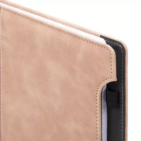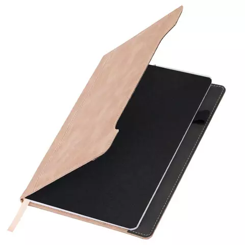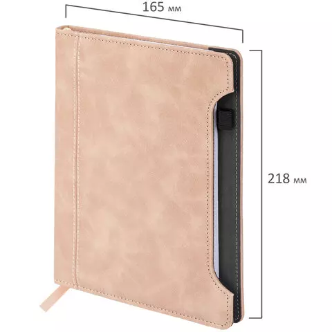 Блокнот А5 165x218мм BRAUBERG Perfect, под кожу софт-тач, держатель для ручки, 80 листов, клетка, бежевый, 116617