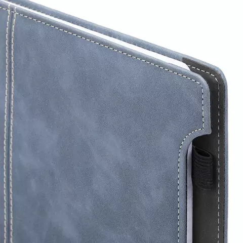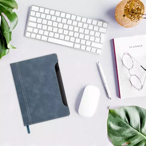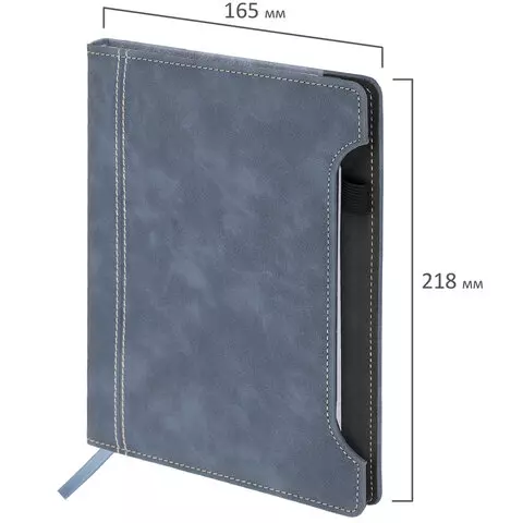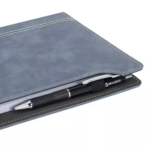 Блокнот А5 165x218мм BRAUBERG Perfect, под кожу софт-тач, держатель для ручки, 80 листов, клетка, серо-синий, 116618