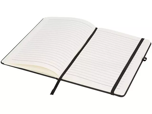 Блокнот Noir среднего размера. Блокнот Noir с мягкой на ощупь черной ПУ обложкой. В каждом блокноте есть цветная застежка, держатель для ручки и лента-закладка. Блокнот содержит 96 листов линованной бумаги (70 г/м²) кремового цвета. ПУ.