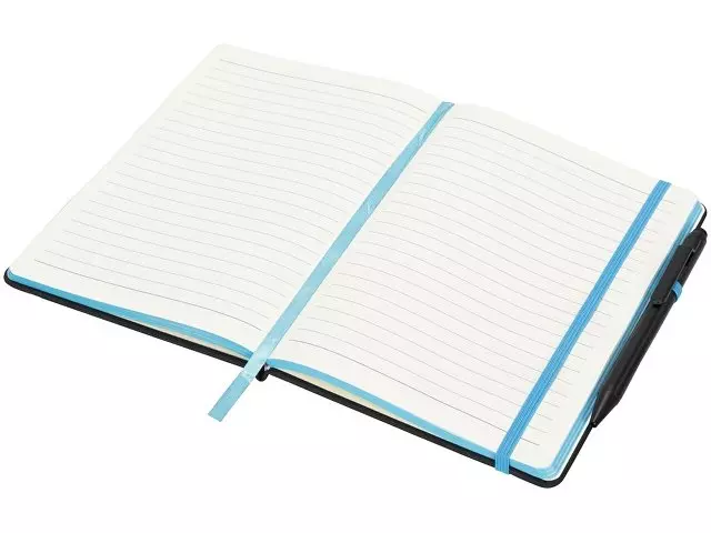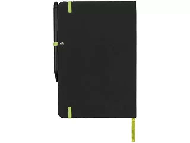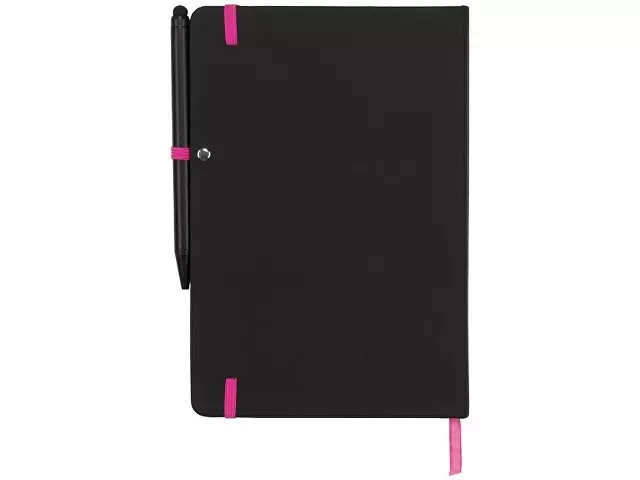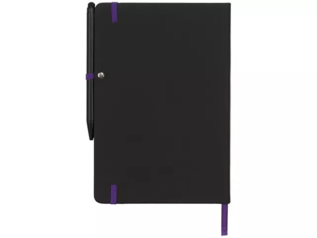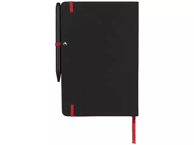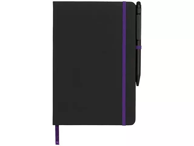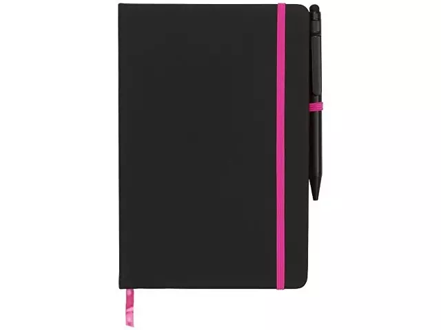 Блокнот Noir Edge среднего размера. Современный и стильный черный блокнот с мягкой на ощупь обложкой. Цветной край и цветные маркеры страниц, застежка-держатель для ручки. Предлагается с черной шариковой ручкой-стилусом. Блокнот содержит 96 листов линованной бумаги (70 г/м²) кремового цвета. ПУ.