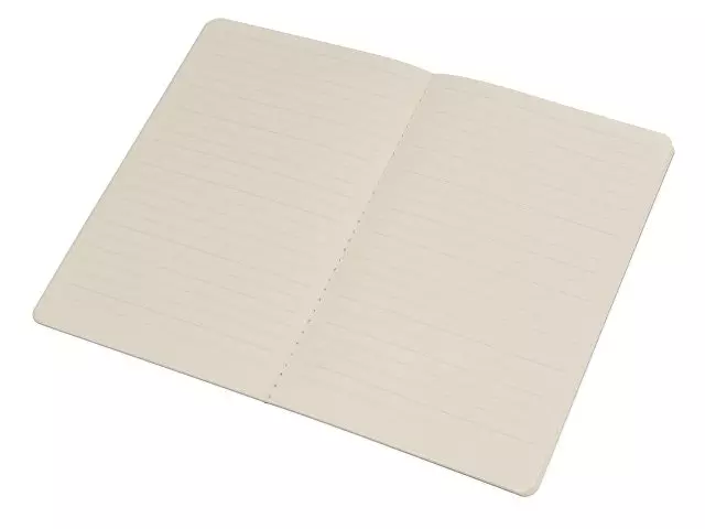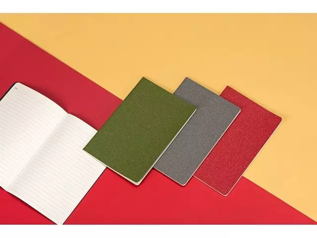 Универсальный блокнот в трендовых оттенках. Обложка матового цвета из переработанного картона с эффектом "меланж". Прошитый нитками блок на 60 линованных страниц.