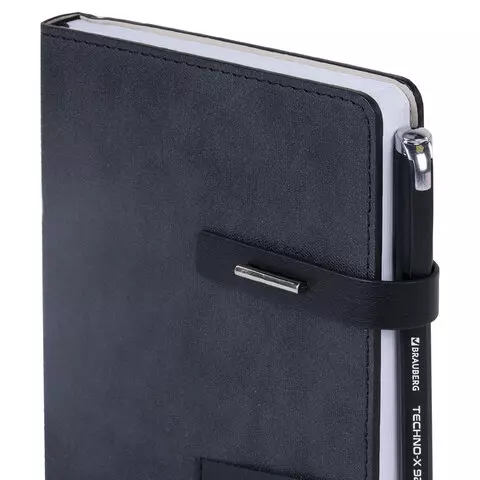 Ежедневник недатированный А5 138х213мм BRAUBERG "Cowboy", под кожу, застежка 160л, черный, 116200