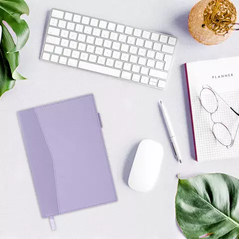 Ежедневник недатированный В6 130х185мм BRAUBERG "Gleam", под кожу, 160л, сиреневый, 116221