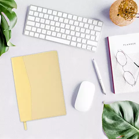 Ежедневник недатированный В6 130х185мм BRAUBERG "Gleam", под кожу, 160л, желтый, 116222