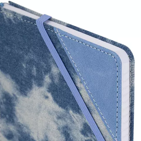 Блокнот А5 135x210мм BRAUBERG "Denim", ткань/экокожа, резинка, держатель, 80л клетка, голубой, 117138