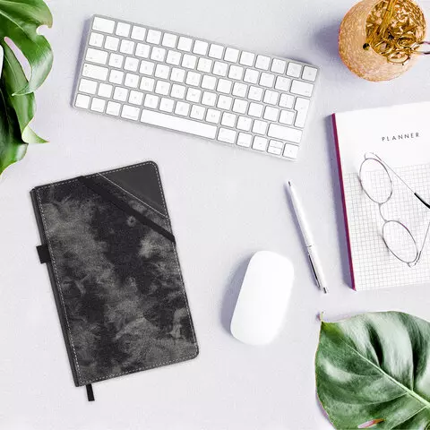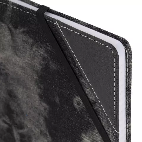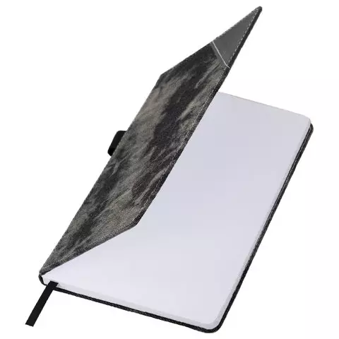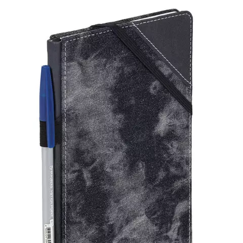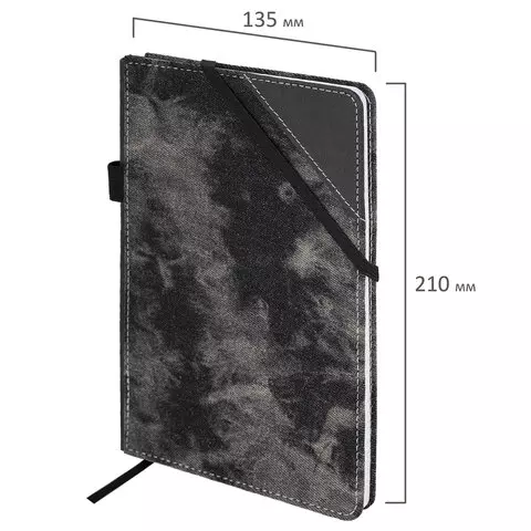 Блокнот А5 135x210мм BRAUBERG Denim, ткань/экокожа, резинка, держатель, 80л клетка, черный, 117140