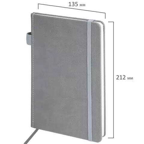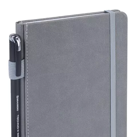 Блокнот А5 135x212мм BRAUBERG "Soft touch" под кожу, резинка, держатель, 80л клетка, серый, 117146