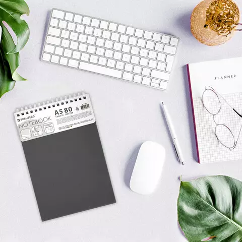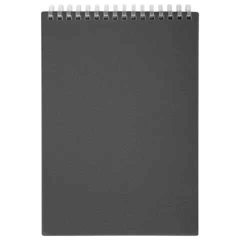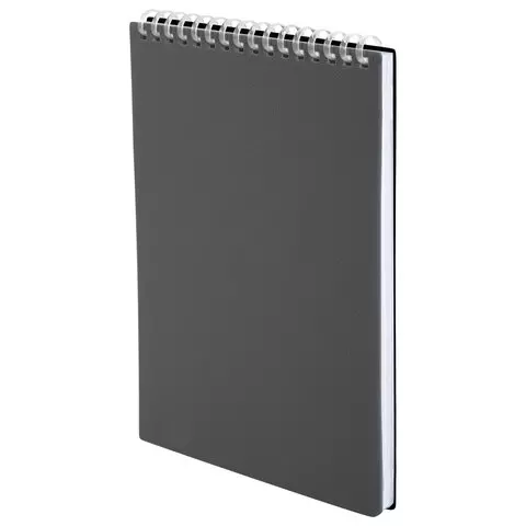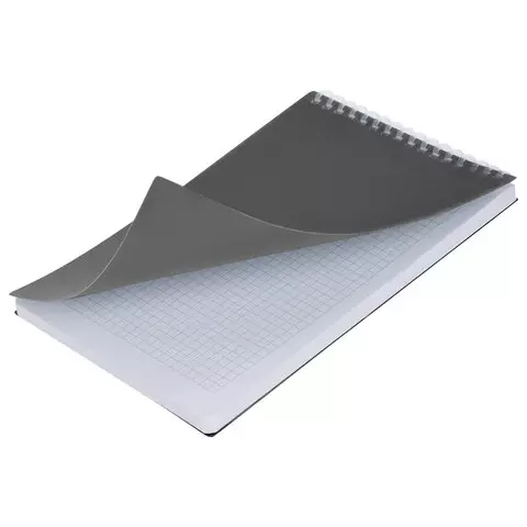 Блокнот А5 80л, BRAUBERG, силиконовый гребень, обложка пластик, клетка, серый, 117562