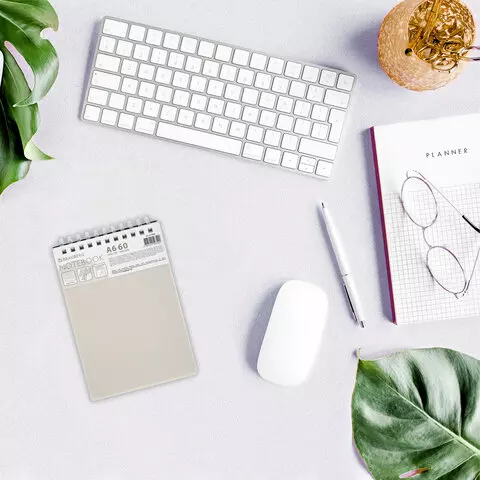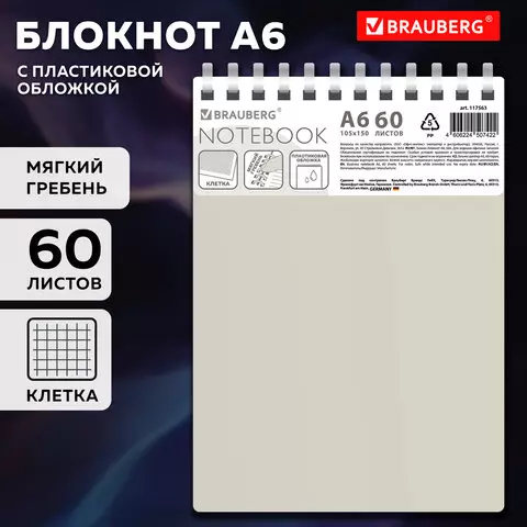 Блокнот МАЛЫЙ ФОРМАТ А6 60л, BRAUBERG, силиконовый гребень, обложка пластик, клетка, бежевый, 117563
