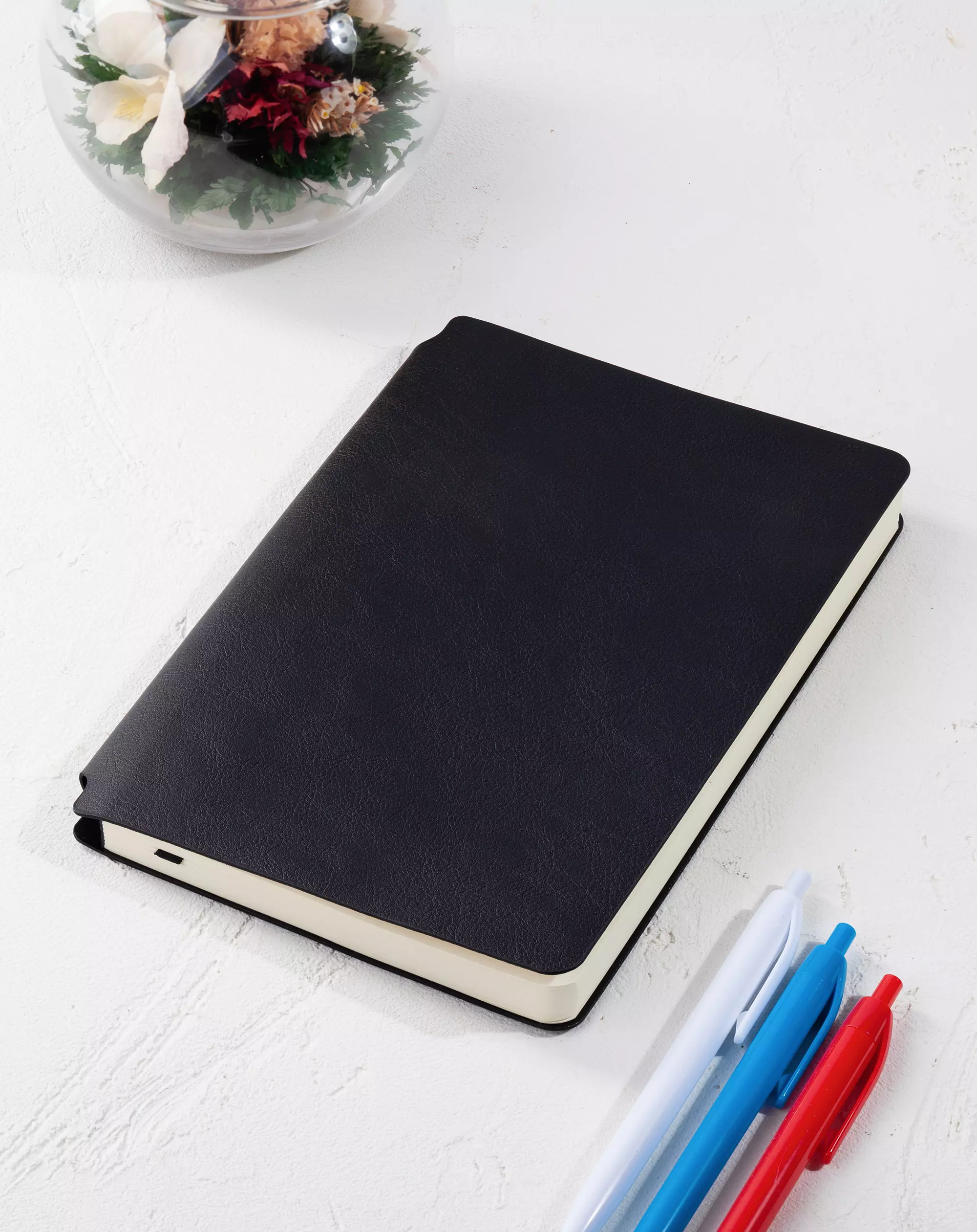 Формат: А5 Количество страниц: 256 Бумага: кремовая, плотность 70 г/м2 Недатированный блок, одноцветная серая графика Форзац: кремовый Нахзац: кремовый, с конвертом Обычный срез Матовый материал, имитирующий фактуру натуральной кожи Гибкий переплет Корешок с тоннелем под ручку