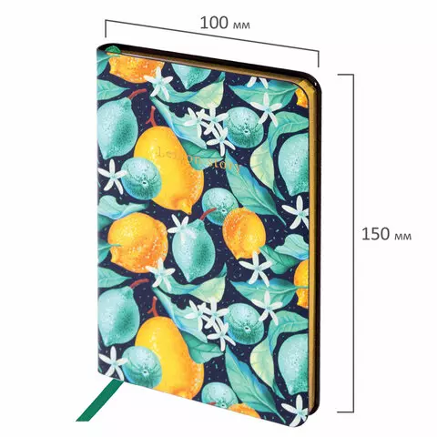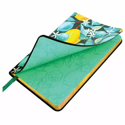 Блокнот МАЛЫЙ ФОРМАТ (100х150 мм) А6, BRAUBERG VISTA "Lemon Story", под кожу, гибкий, срез фольга, 80 л., 112096