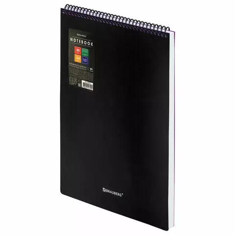 Блокнот БОЛЬШОГО ФОРМАТА А4 80л, обложка пластик, клетка, BRAUBERG Metropolis, ЧЕРНЫЙ, 115577