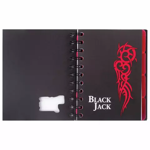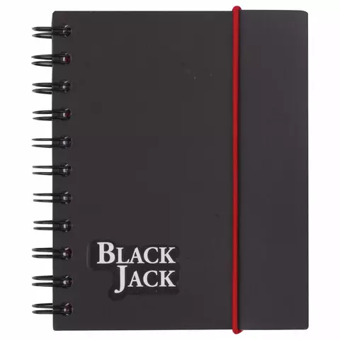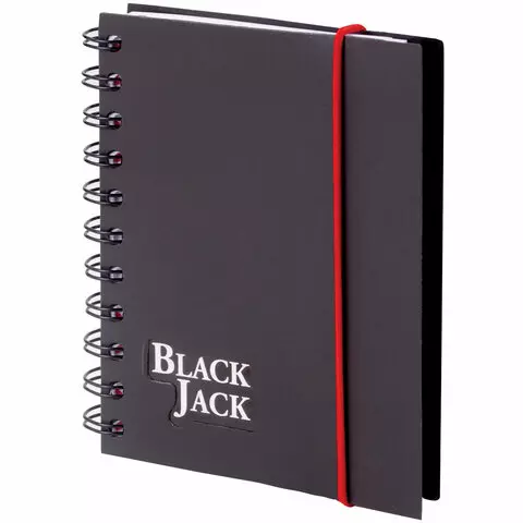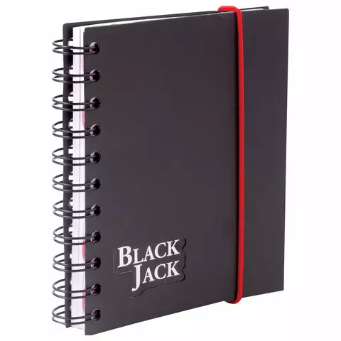 Блокнот МАЛЫЙ ФОРМАТ (105х148 мм) А6, 150 л., гребень сбоку, на резинке, пластиковая обложка, клетка, BRAUBERG, "Black Jack", 125388