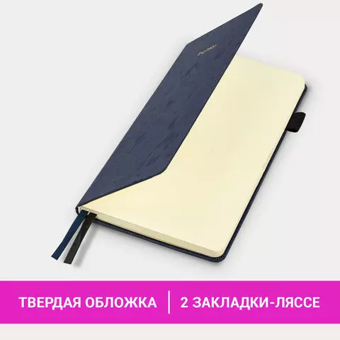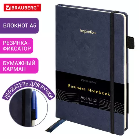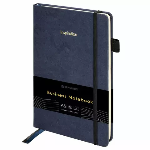 Блокнот А5 138x213мм BRAUBERG Velvet, резинка, держатель, 80л, клетка, синий, 116239