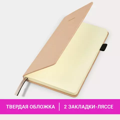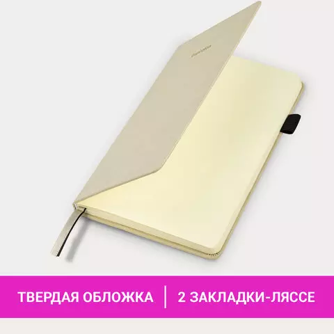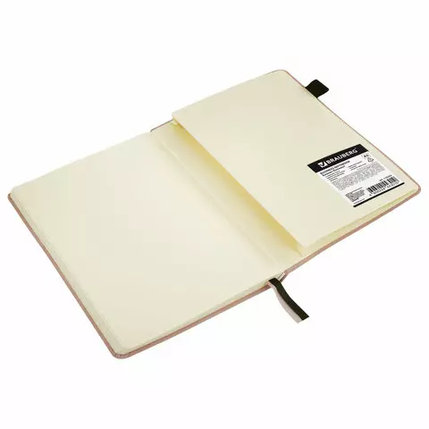 Блокнот А5 138x213 мм BRAUBERG Velvet, резинка, держатель, 80 л., клетка, бежевый, 116240