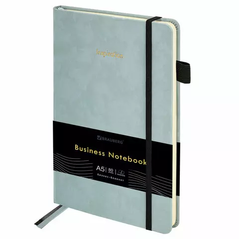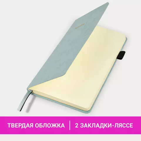 Блокнот А5 138x213мм BRAUBERG Velvet, резинка, держатель, 80л, клетка, серо-голубой, 116241