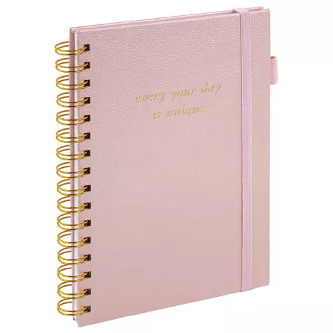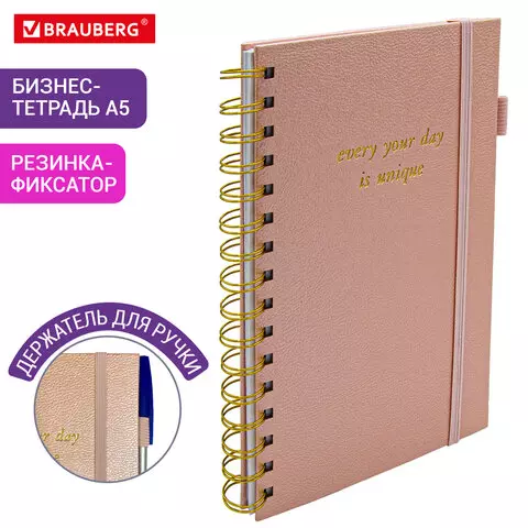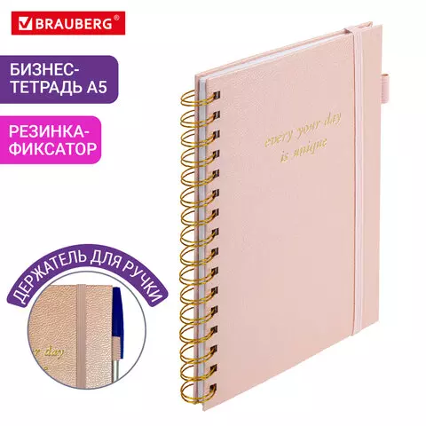 Бизнес-тетрадь на гребне А5 148х216мм BRAUBERG Calipso под кожу, резинка, клетка, 80л, розовая, 116251