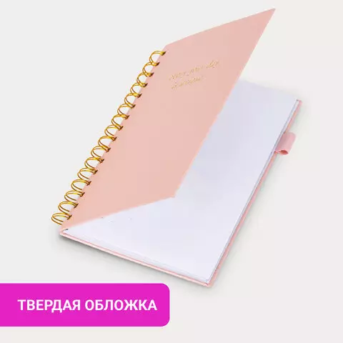 Блокнот А5 138x213мм BRAUBERG Velvet, резинка, держатель, 80л, клетка, розовый, 116242